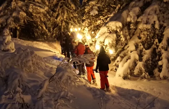 Accessible dès 6 ans, cette randonnée nocturne guidée vous entraîne au cœur d’une forêt enneigée illuminée par les torches. Une activité après-ski conviviale, idéale pour partager un moment unique en famille ou entre amis. La soirée se termine autour d’un verre de vin chaud ou chocolat chaud.