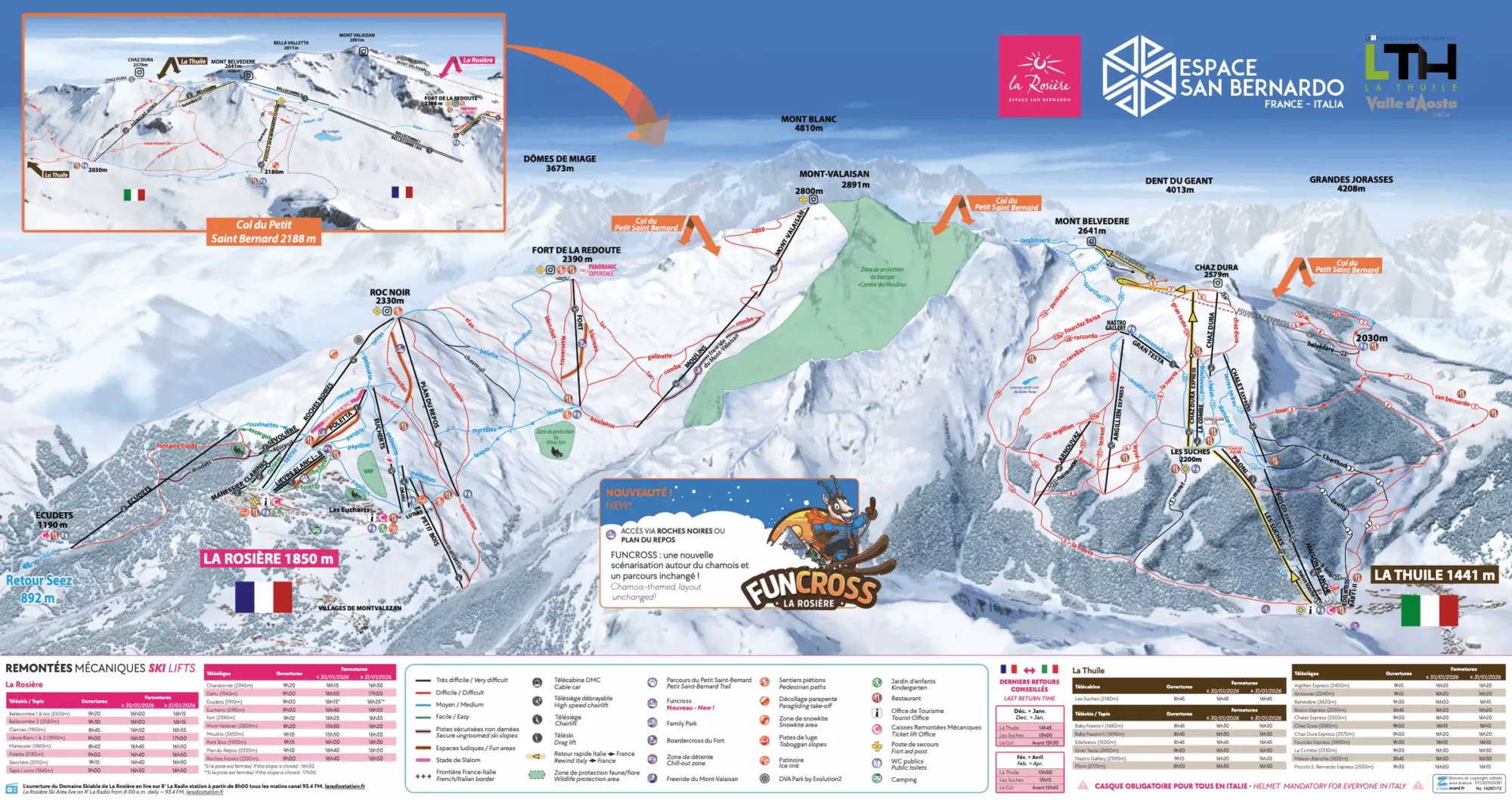 La mappa delle piste da sci è disponibile, tra gli altri, presso l’Ufficio del Turismo e la Maison du Ski (centro di La Rosière).